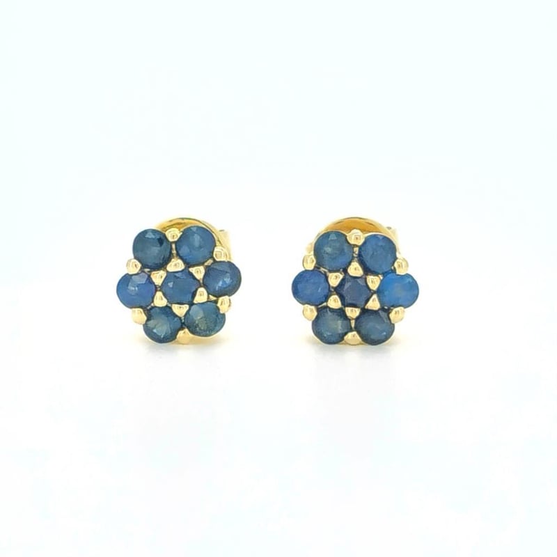 9CT YELLOW GOLD CEYLON SAPPHIRE FLORAL STUD EARRINGS