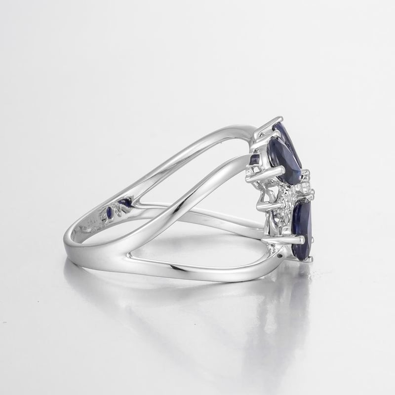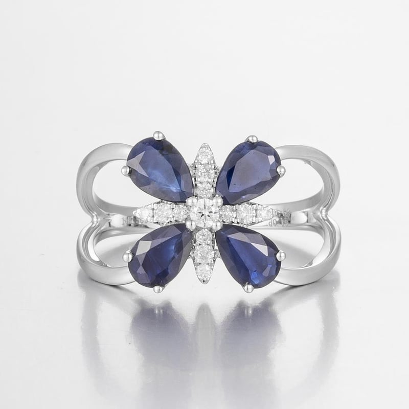 Featuring Centre, 4 Pear Cut, Deep Blue Black Australian Sapphires (1.62Ct Tsw, Heavily Included), Claw Set, With 13 Round Brilliant Cut Diamonds (0.15Ct Tdw, F-G Colour, Vs2 Clarity), Claw Set. Ring Size O.