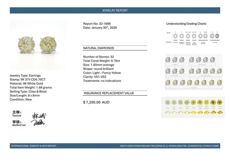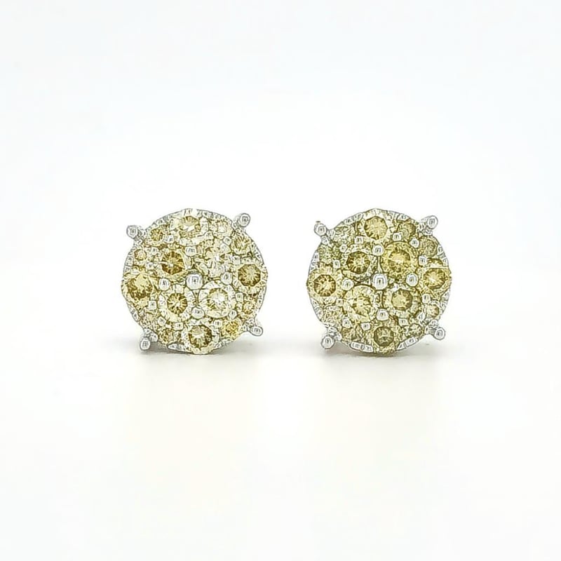 9CT WHITE GOLD FANCY YELLOW DIAMOND CLUSTER STUD EARRINGS