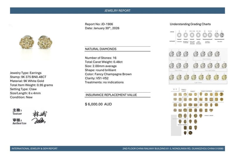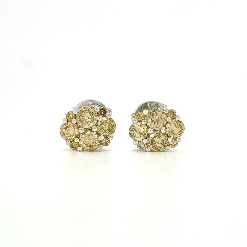 9CT WHITE GOLD FANCY CHAMPAGNE BROWN DIAMOND CLUSTER STUD EARRINGS