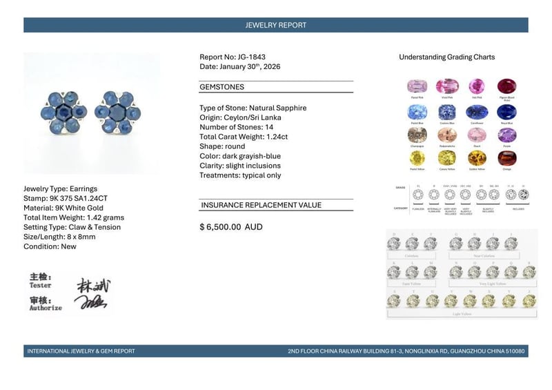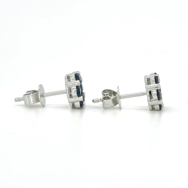 9CT WHITE GOLD CEYLON SAPPHIRE FLORAL STUD EARRINGS Featuring, 14 Round Cut, Dark Greyish-Blue Ceylon Sapphires (1.24Ct Tsw, Slight Inclusions), Claw/Tension Set. Valuations Provided by an Independent Third-Party Professional Not Directly Associated With Lloyds Auctions at AUD $6500This valuation has been conducted by an independent third-party professional. The valuation amount is an assessment by the issuing valuer and does not reflect the auction value of the item. Any inquiries regarding the valuation should be directed to the issuing valuer (refer to contact details on the certificate), as Lloyds Auctions has no affiliation or influence over the valuation, the valuer, or the stated amount. Condition: Good - Refer Images 0584505+2090