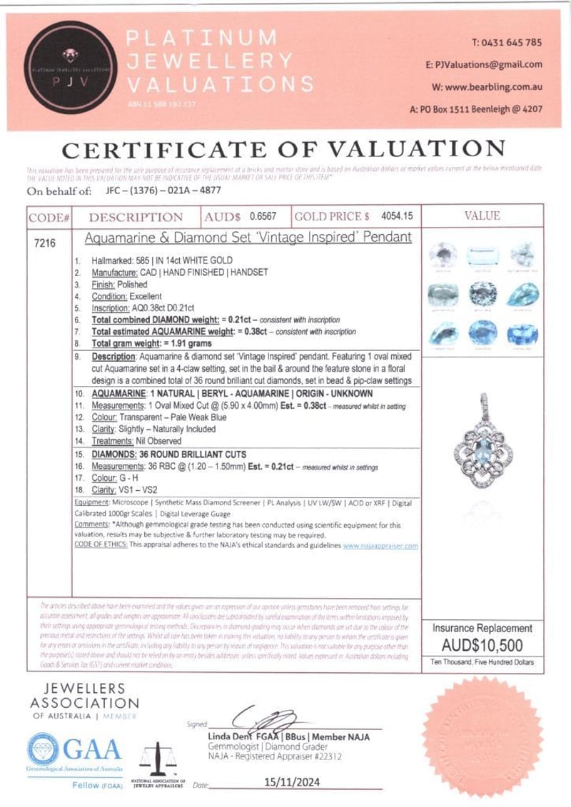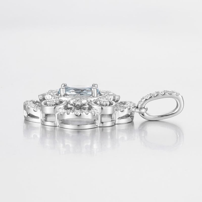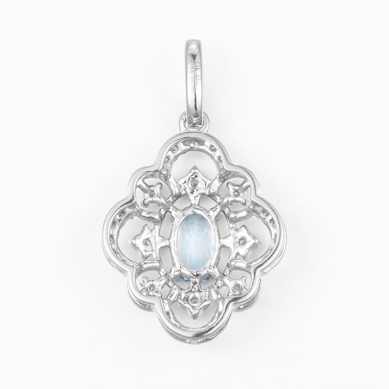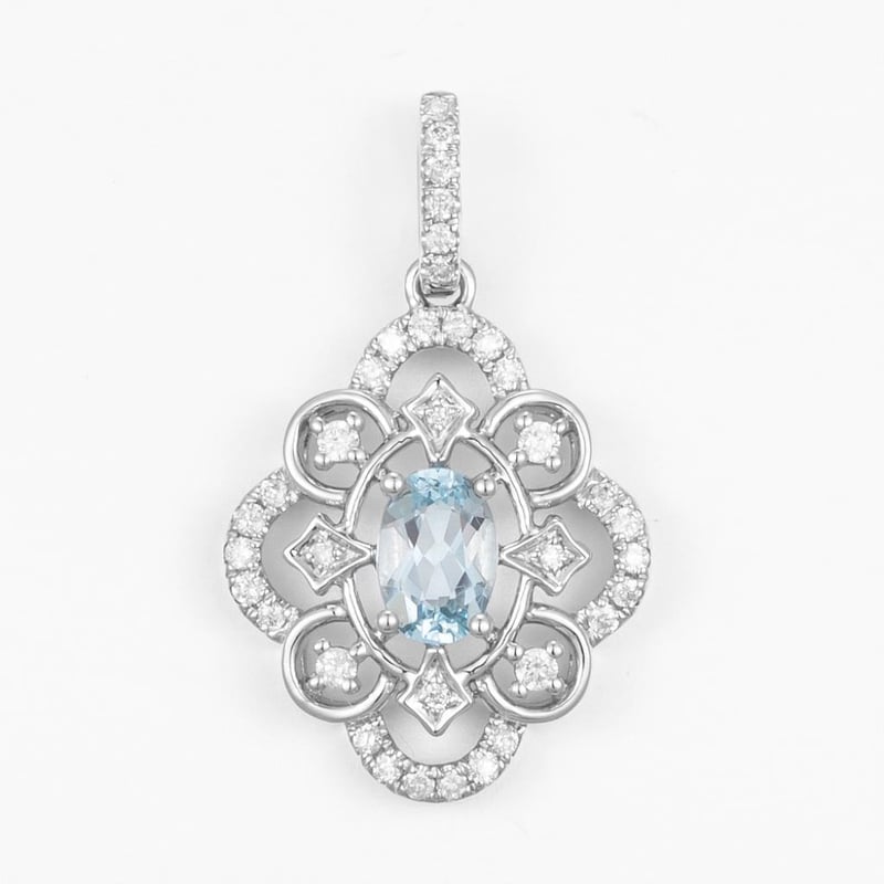 14CT WHITE GOLD AQUAMARINE AND DIAMOND PENDANT