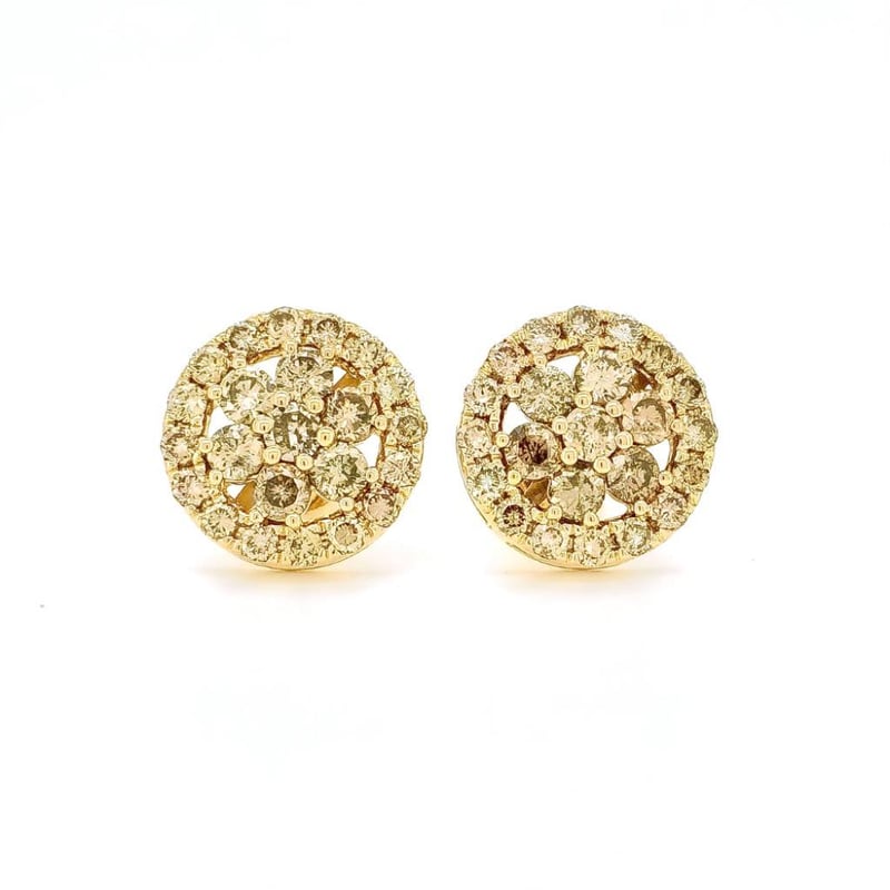 9CT YELLOW GOLD FANCY CHAMPAGNE BROWN DIAMOND FLORAL STUD EARRINGS