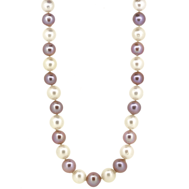 The Necklace Features, 18 Near Round, Mauve Pink Cultured Freshwater Pearls (10.00-12.00Mm, Surface Blemishes), Individually Knotted. Alternating Are, 19 Near Round, White Cultured South Sea Pearls (9.60Mm-11.70Mm, Surface Blemishes), Individually Knotted. Decortaing The Ball Clasp Are, 4 Round Brilliant Cut, Diamonds (0.04Ct Tdw, H-J Colour, Si-I2 Clarity), Bead Set. Necklace Length Are 45Cm.