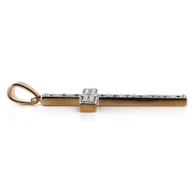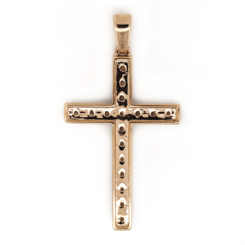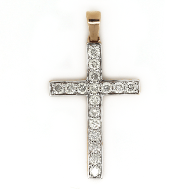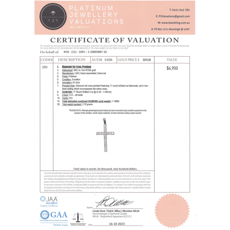 14K ROSE GOLD, 1.02CT TDW DIAMOND, CROSS PENDANT.