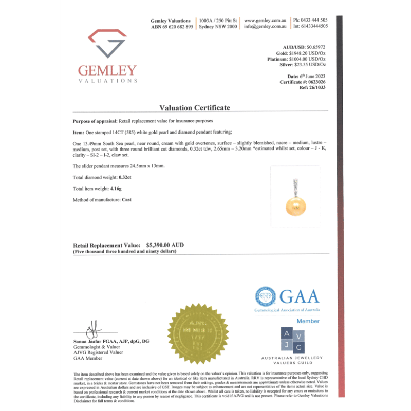 This valuation has been conducted by an independent third-party professional. The valuation amount is an assessment by the issuing valuer and does not reflect the auction value of the item.