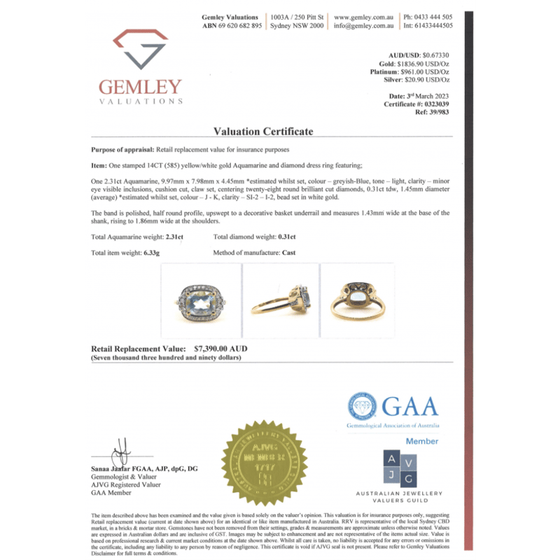 This valuation has been conducted by an independent third-party professional. The valuation amount is an assessment by the issuing valuer and does not reflect the auction value of the item.