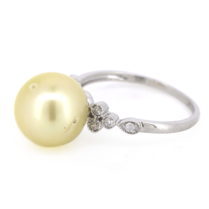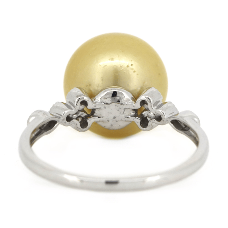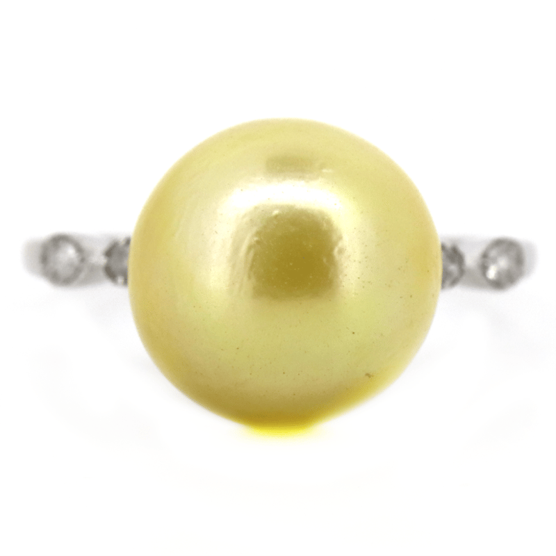 The Design Features, One Cream With Gold Overtones, Near Round, Cultured South Sea Pearl (10.79Mm Size, Medium-Lustre), Post Set. Flanked By, 8 Round Brilliant Cut, Diamonds (0.11Ct Tdw, J-K Colour, Si2-I2 Clarity), Bezel/Bead Set. Ring Size N.