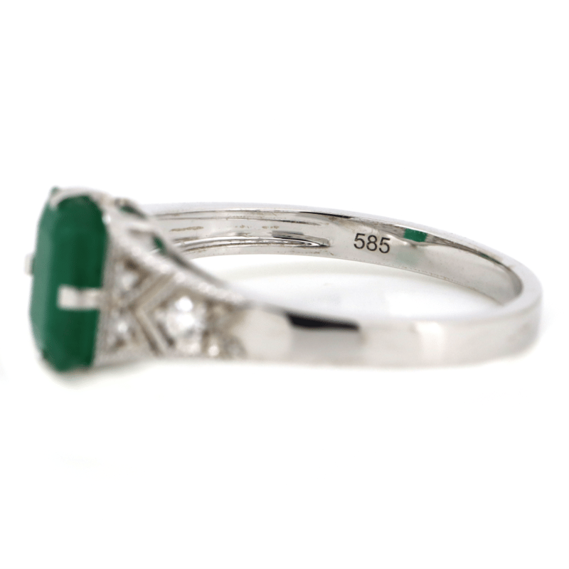 14K WHITE GOLD, EMERALD AND DIAMOND, DRESS RING.
