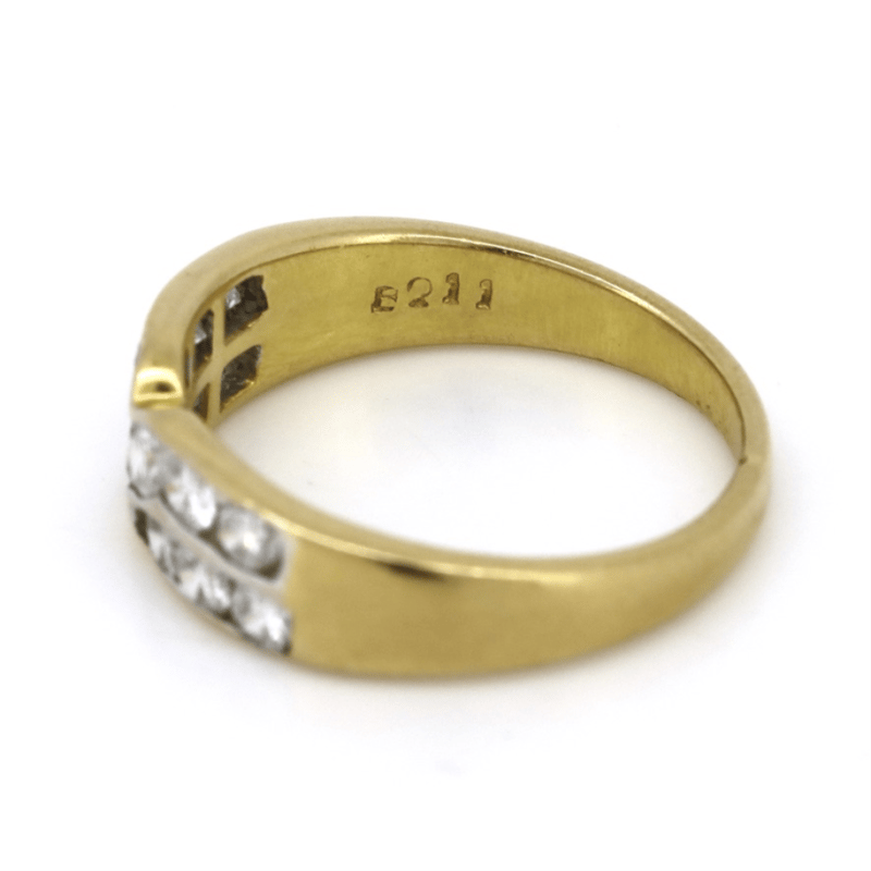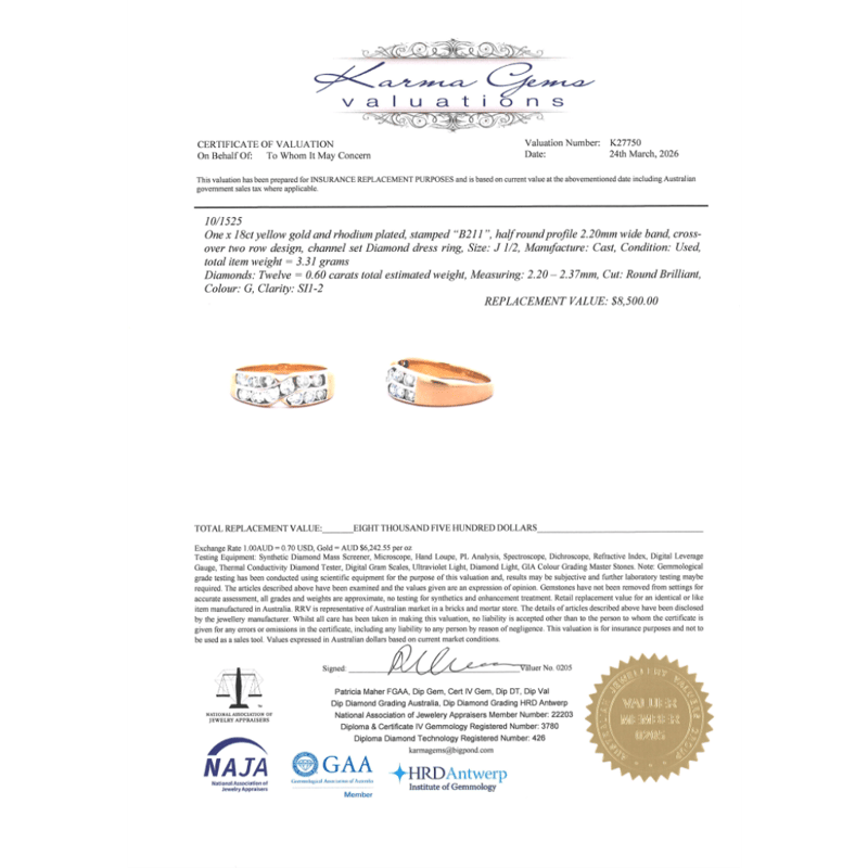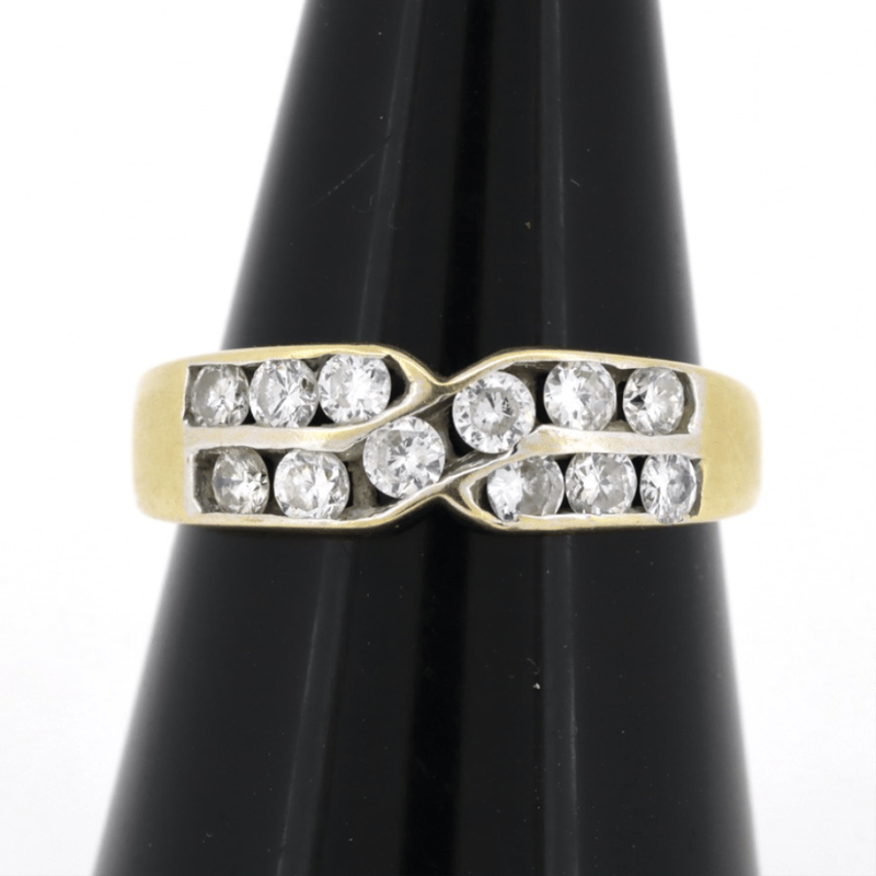 The Design Features, 12 Round Brilliant Cut, Diamonds (0.60Ct Tdw, G Colour, Si1-2 Clarity), Channel Set. Ring Size J 1/2. Condition: Pre-Owned. Total Weight Is 3.31Grams.