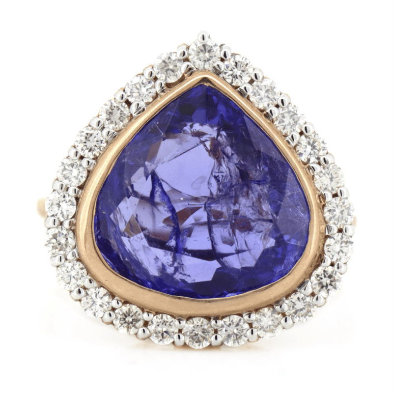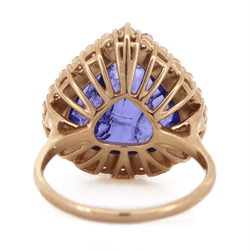14K ROSE GOLD, TANZANITE AND DIAMOND, HALO RING.