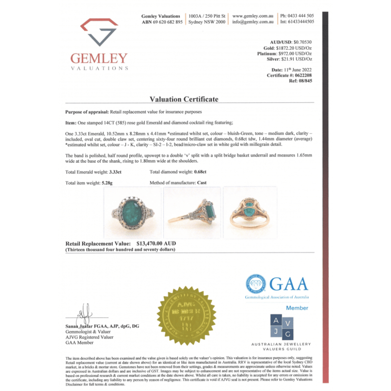 This valuation has been conducted by an independent third-party professional. The valuation amount is an assessment by the issuing valuer and does not reflect the auction value of the item.