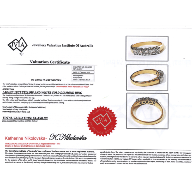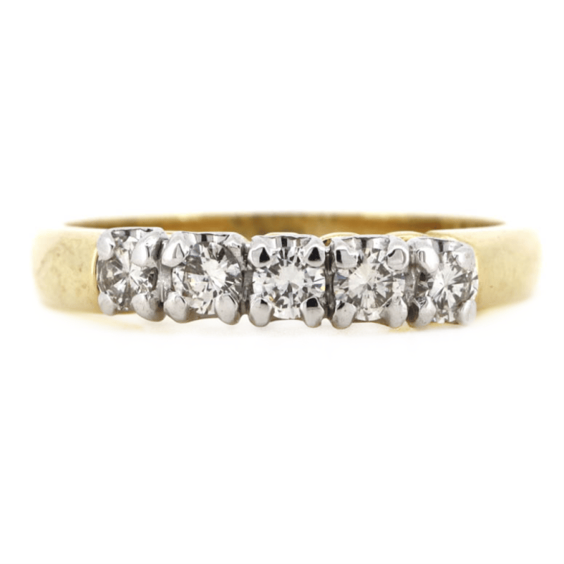 The Centre Features, 5 Round Brilliant Cut, Diamonds (0.40Ct Tdw, H-J Colour, Si1-Si2 Clarity), Claw Set. Ring Size O 1/2. Total Item Weight Is 3.79Grams. Condition: Pre-Owned.
