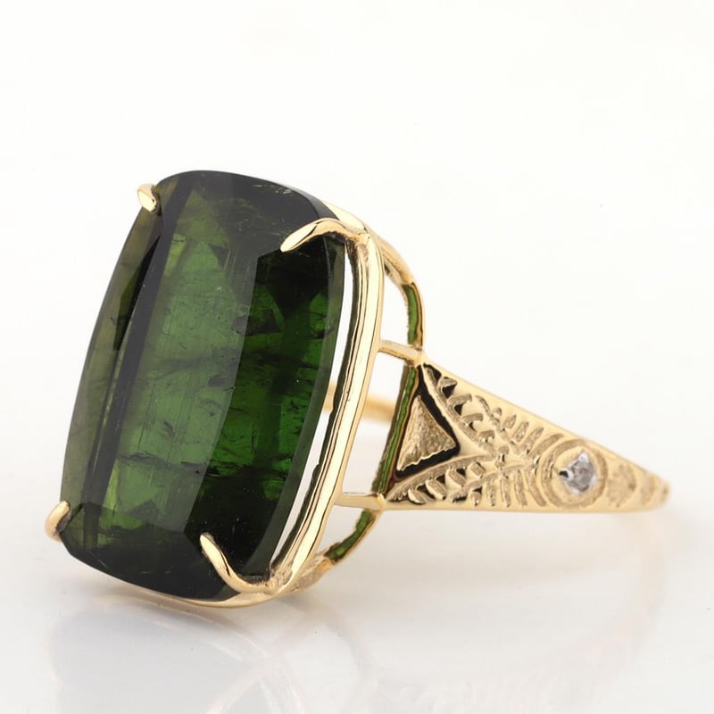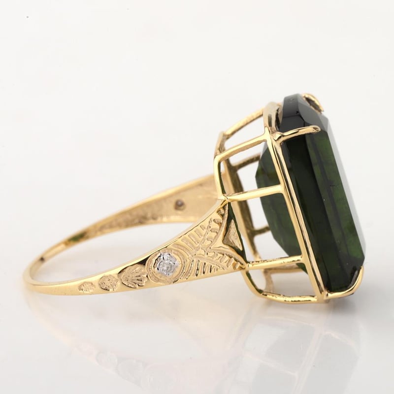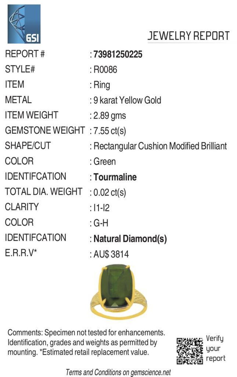 9CT YELLOW GOLD NATURAL TOURMALINE & DIAMOND RING WITH VALUATION
