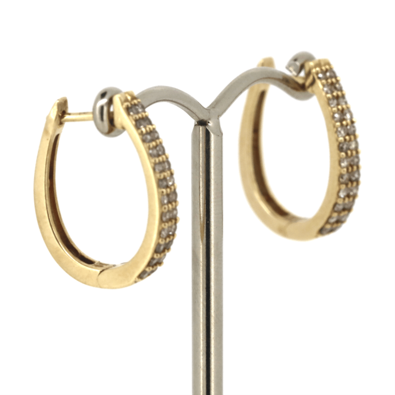 10K YELLOW GOLD AND DIAMOND, HOOP EARRINGS.