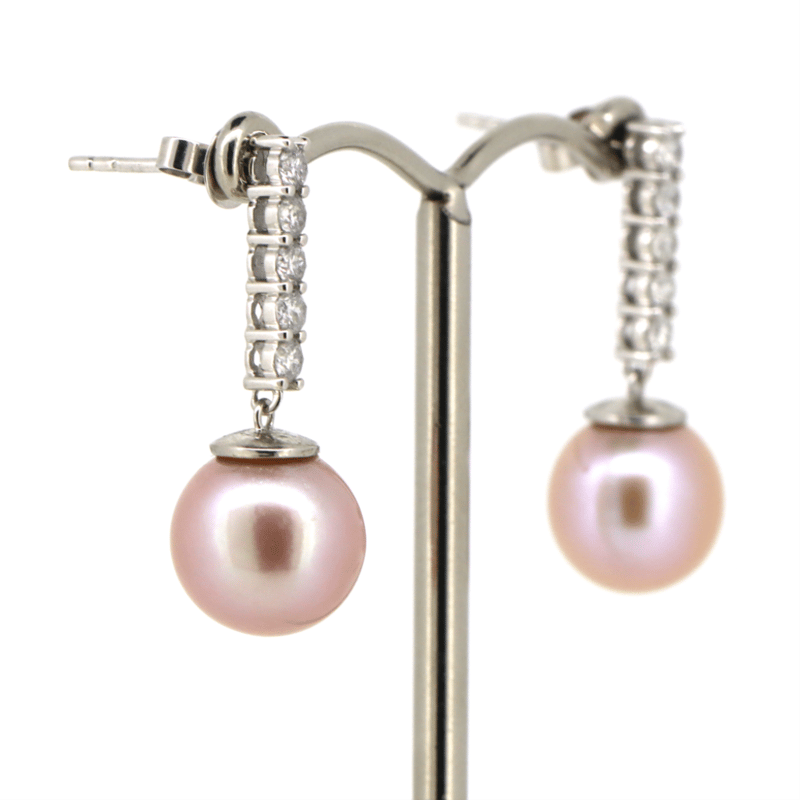 The Earrings Feature, 2 Near Round, Pink South Sea Pearls (10.25Mm X 10.30Mm Size, Lightly Spotted). Decorating The Drops Are, 10 Round Brilliant Cut, Diamonds (0.53Ct Tdw, F-I Colour, Si-I3 Clarity), Micro-Claw Set.