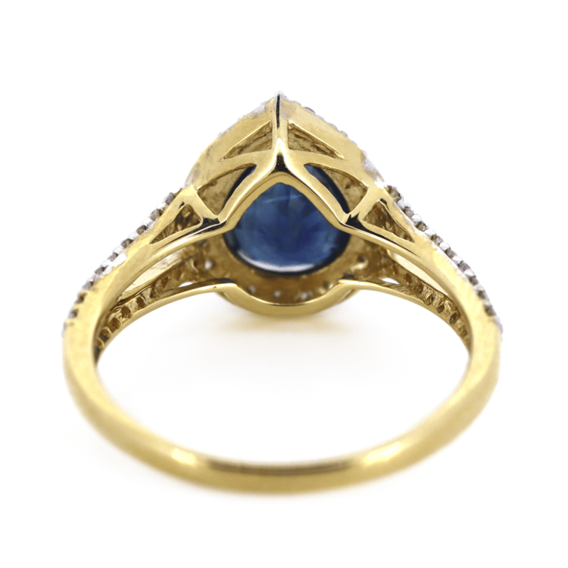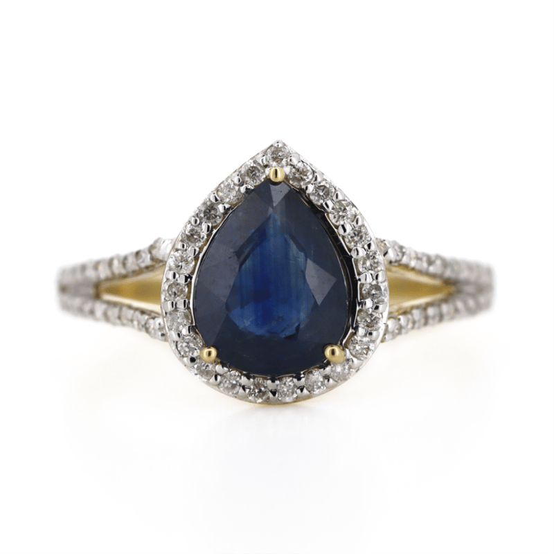 The Centre Features, One Pear Faceted Cut, Deep Blue, Sapphires (1.91Ct, Included), Claw Set. Surrounding The Centre And Decorating The Split Band Are, 59 Round Brilliant Cut, Diamonds (0.30Ct Tdw, I-K Colour, Si2-P2 Clarity), Micro-Bead Set. Ring Size N.
