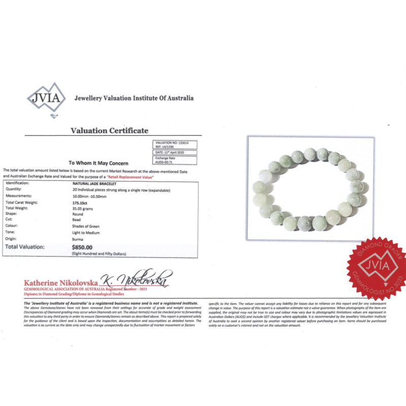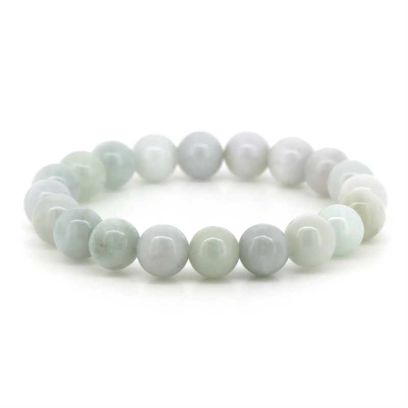 The Bracelet Features, 20 Round Shaped Beads (10.00Mm - 10.50Mm), Light-Medium Shades Of Green, Individually Strung Along A Single Row (Expandable).