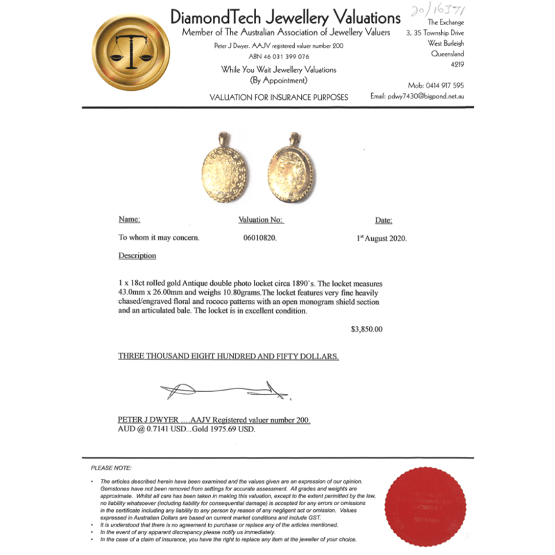 This valuation has been conducted by an independent third-party professional. The valuation amount is an assessment by the issuing valuer and does not reflect the auction value of the item.