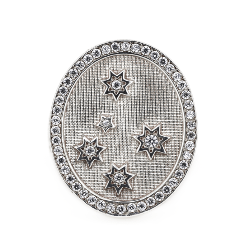 STERLING SILVER AND ZIRCONIA, SOU Thern Cross Gents Ring. The Ring Features The Southern Cross. Ring Size S. Weighs 14.7G. Condition: Pre-Owned. Condition: Good - Refer Images 0645973+1367