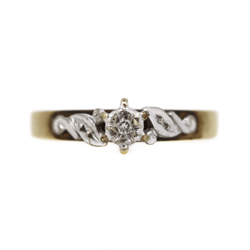 9K YELLOW/WHITE GOLD AND DIAMOND DRESS RING