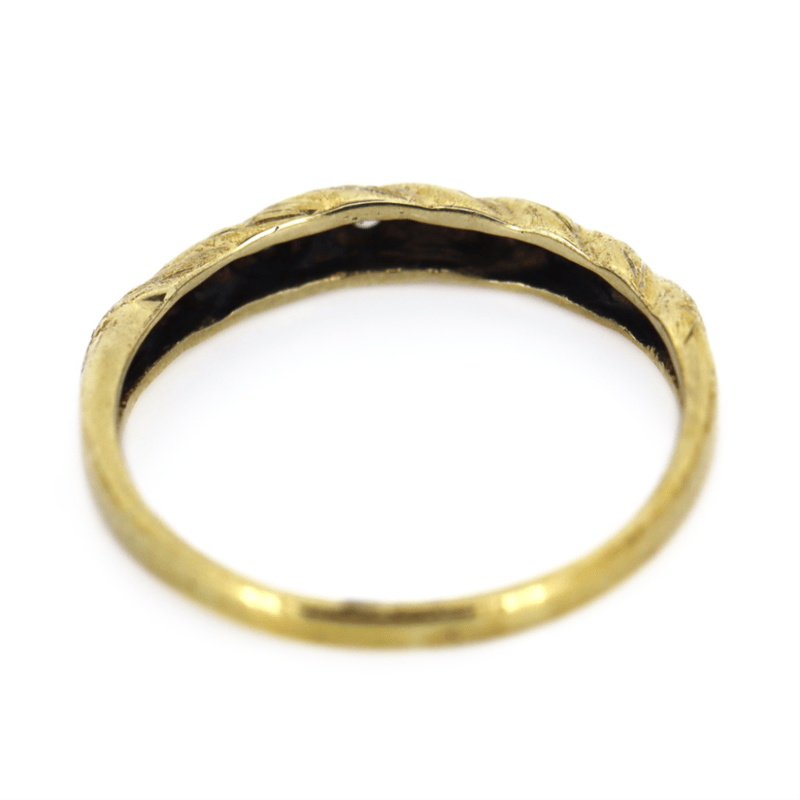 The Design Features, 5 Round, Diamonds, Hammer Set. Ring Size O. Total Item Weight Is 1.25 Grams. Condition: Pre-Owned.