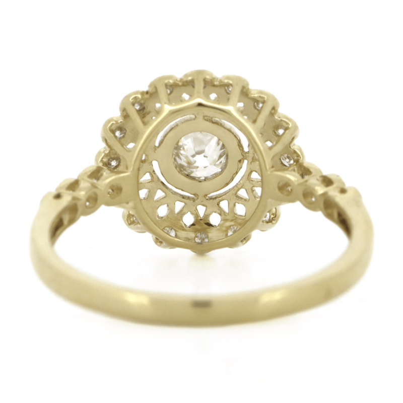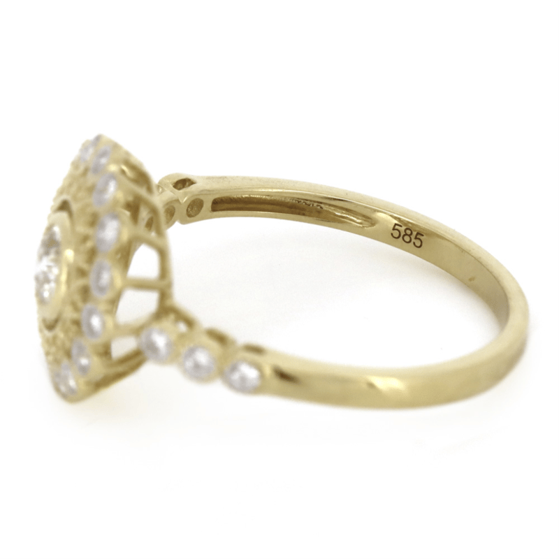 14K YELLOW GOLD AND DIAMOND, HALO RING.