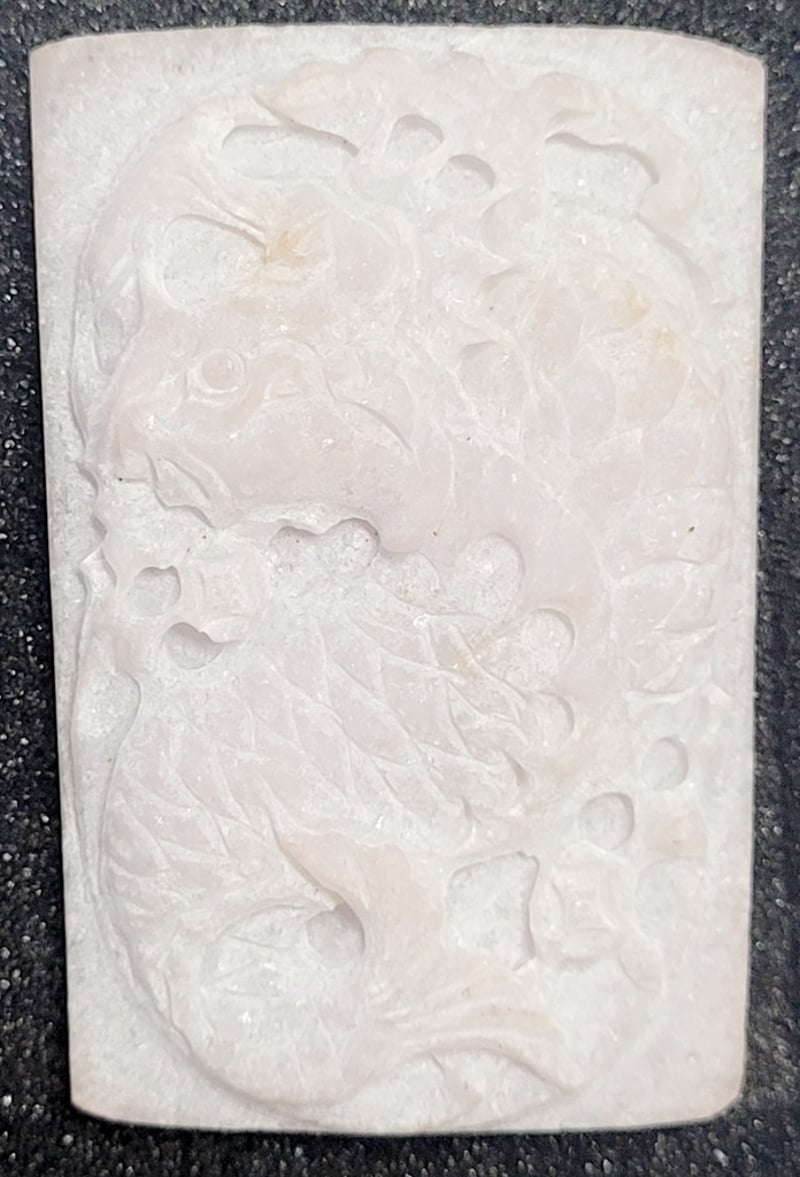 Jade Gemstone, Light White Tone, Carved Design