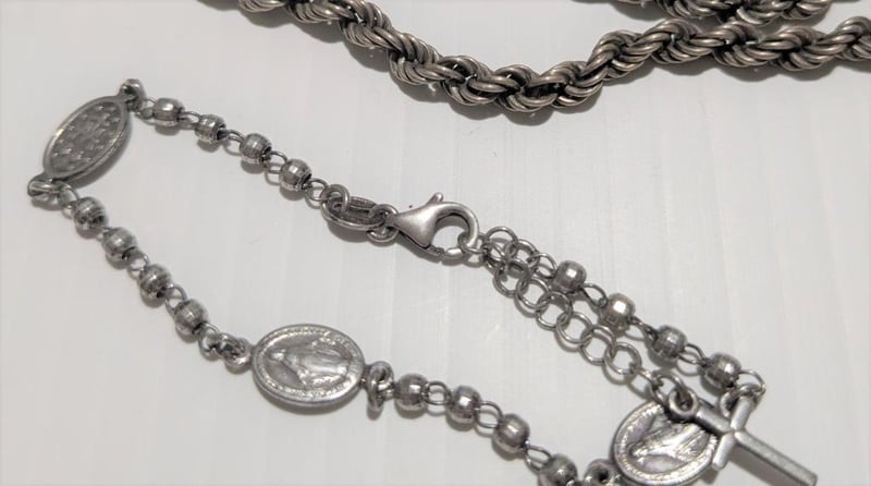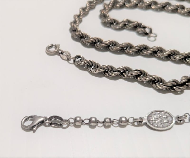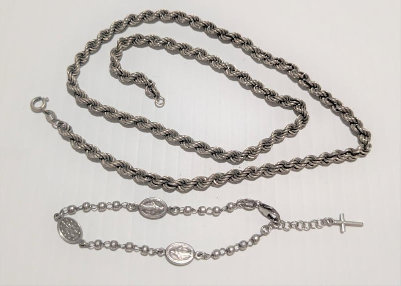 STERLING SILVER NECK CHAIN & RELIGIOUS BRACELET