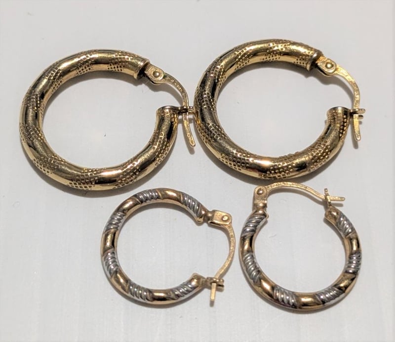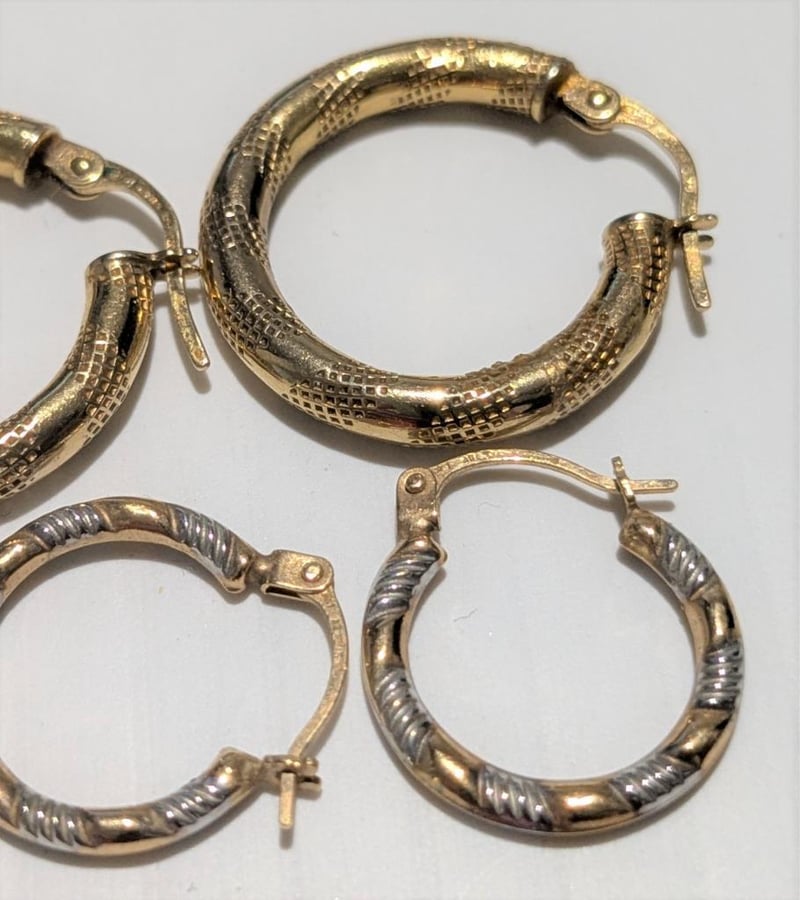 9CT GOLD HOOP EARRINGS X 2 PAIRS