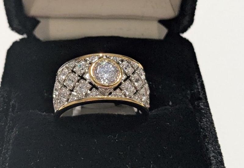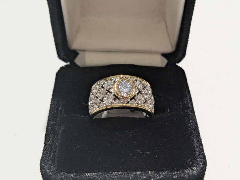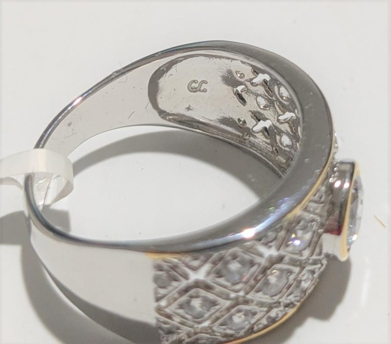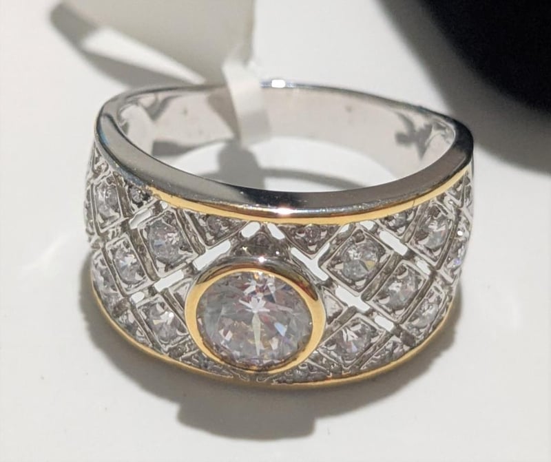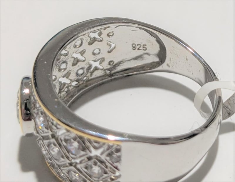 STERLING SILVER DRESS RING WITH WHITE STONES Marked 925 & In Display Box Condition: Good - Refer Images 0587854+10