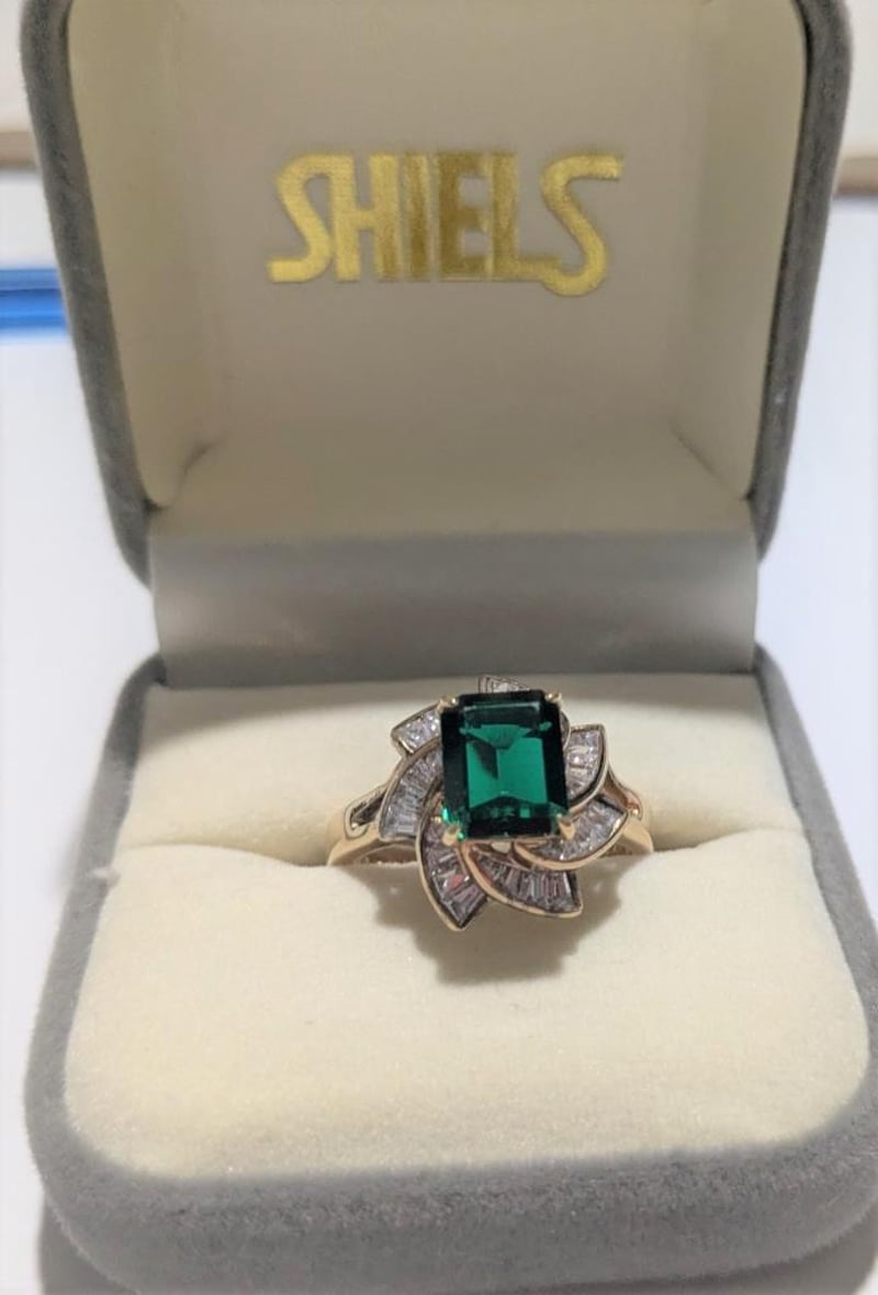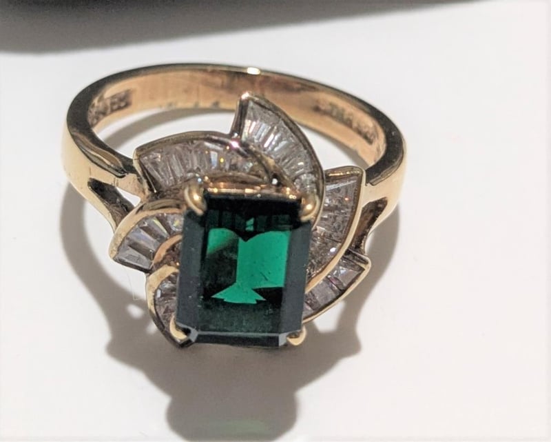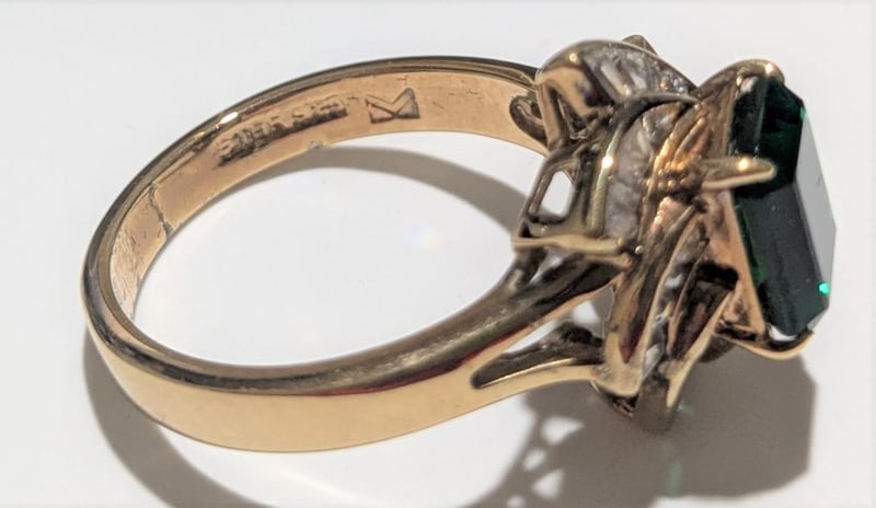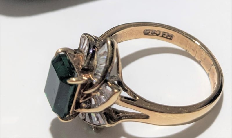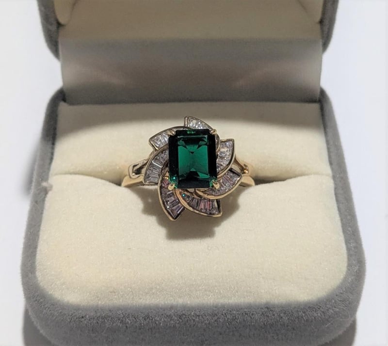STERLING SILVER DRESS RING WITH GREEN & WHITE STONES