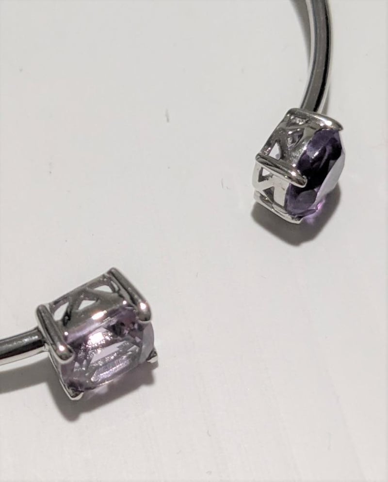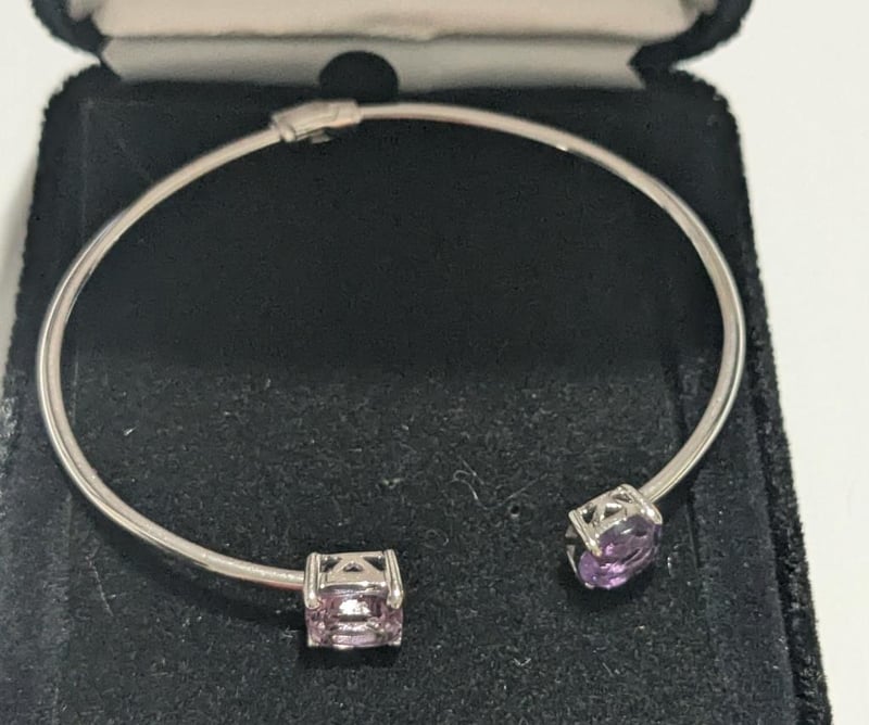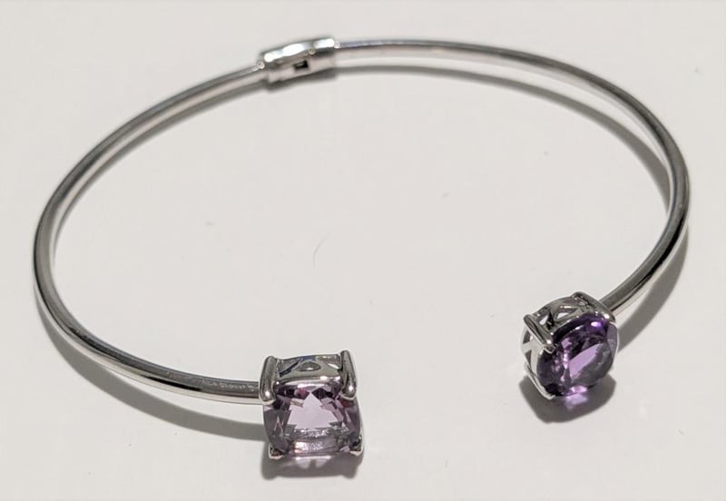 STERLING SILVER HINGED BANGLE WITH PURPLE STONES
