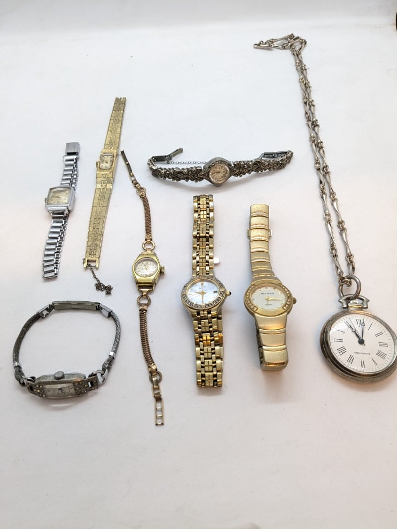 WRISTWATCH AND POCKETWATCH COLLECTION - MIXED METALS AND STYLES Includes Brands Such As Citizen, Paco Ferri, Claro, Etc Condition: Fair - Refer To Images 584551+2