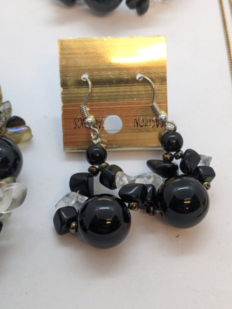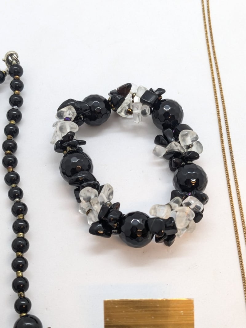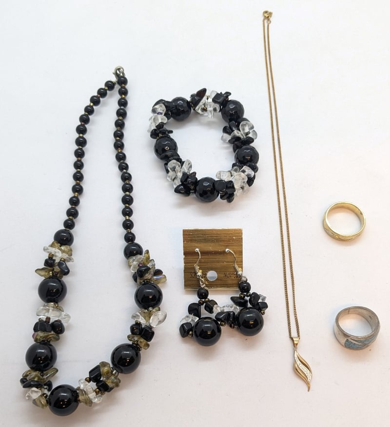 Necklace And Bracelet In Good Condition With Secure Beading And Intact Clasps. Earrings Display Minor Wear Consistent, With Age. Gold Rings Show Patina And Surface Wear; Silver Ring Exhibits Oxidation. Gold-Plated Pendant Necklace In Fair Condition With Minor Plating Wear. All Components Functional And Wearable. Stamps Shown In Photos