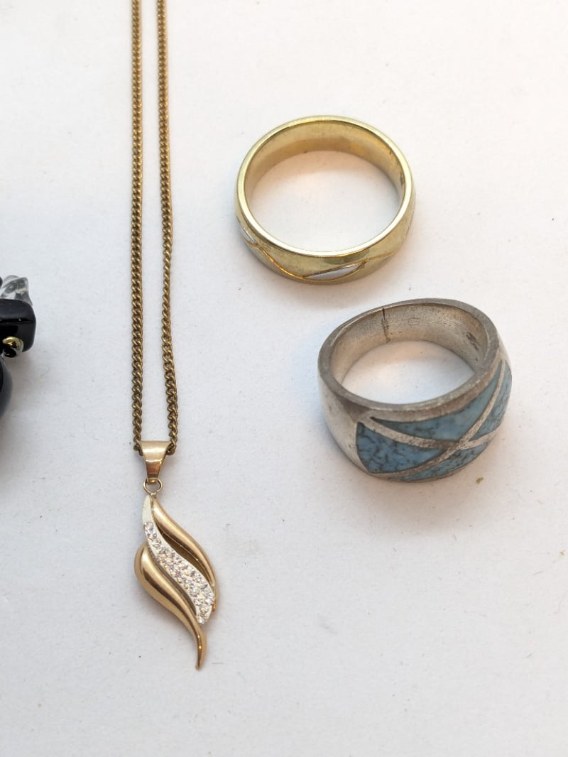 Markings: 950 (Silver Ring), 375 (Necklace)