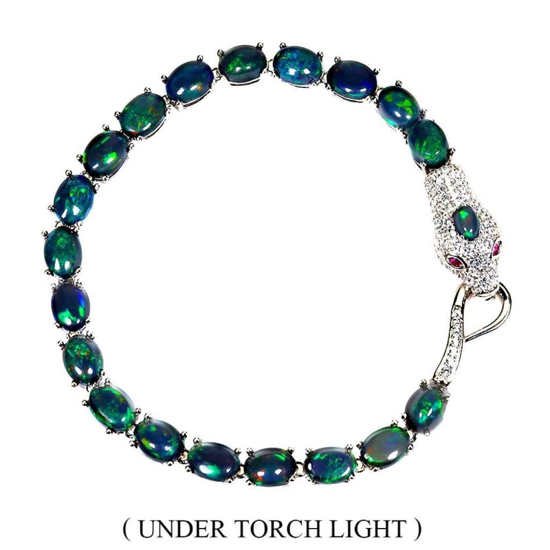 NATURAL RAINBOW BLACK OPAL SERPENT TENNIS BRACELET.