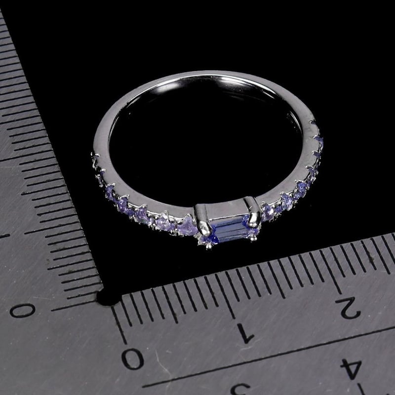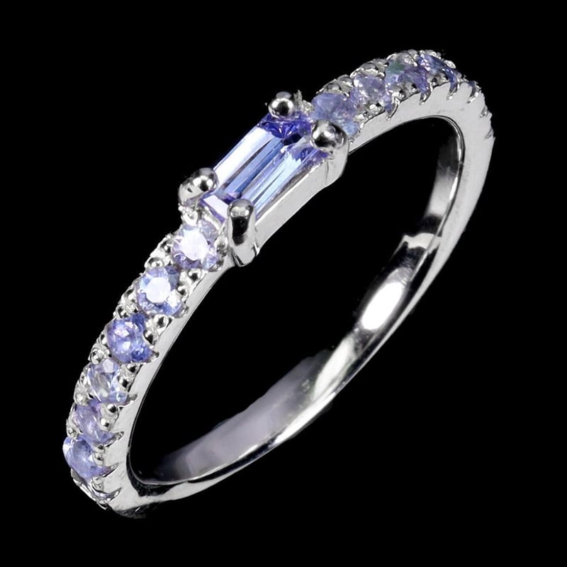 Natural Tanzanite Ring. Made In Solids Sterling Silver And Plated In14K White Gold. Features Natural Violetish Blue Tanzanite'S. Ring Size 8