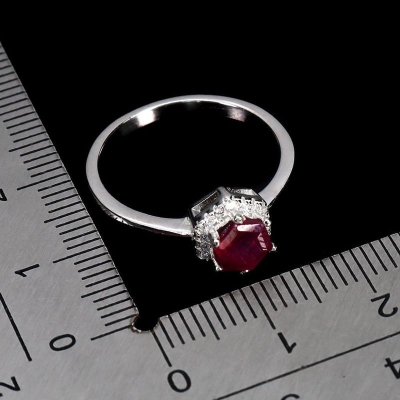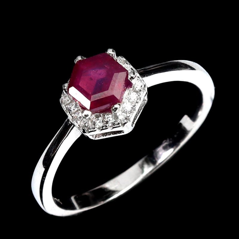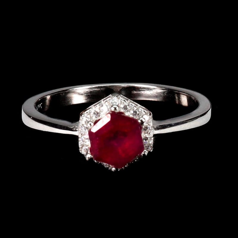 Natural Blood Red Ruby Ring. Made In Solid Sterling Silver And Plated In 14K White Gold. Feature Natural Blood Red Ruby And Sparkling Czs. Ring Size 7