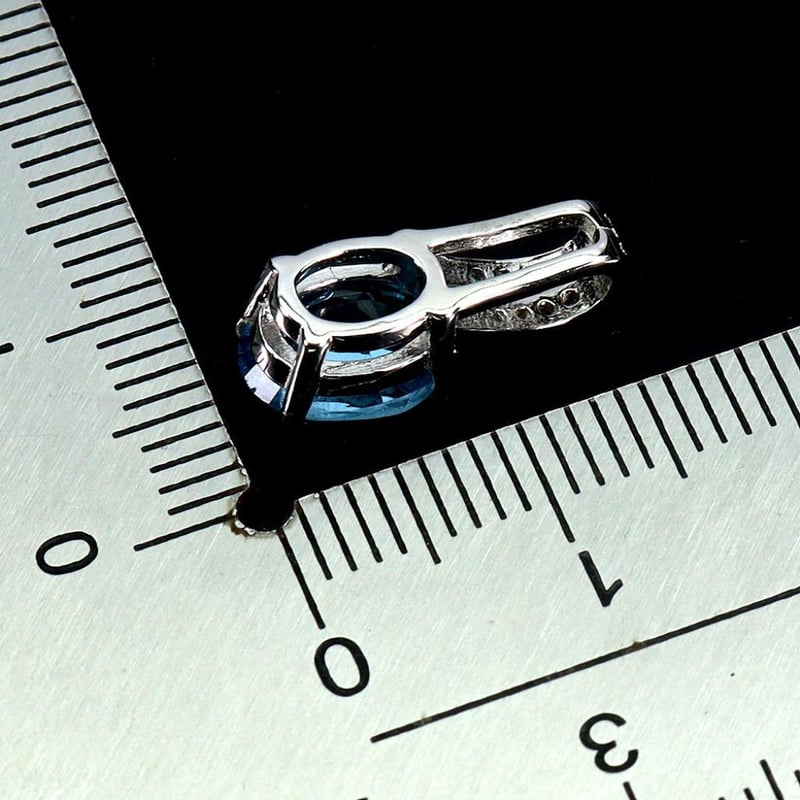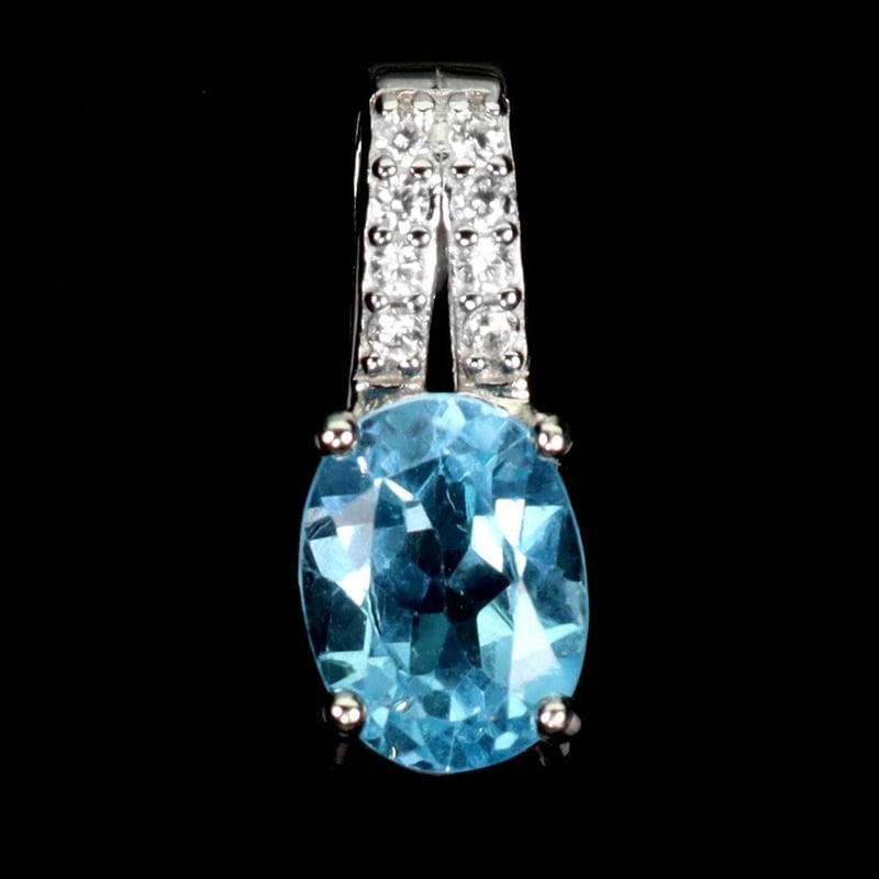Natural Swiss Blue Topaz Pendant. Made In Solid Sterling Silver And Plated In14K White Gold. Features Natural Oval Facet Swiss Blue Topaz And Sparkling Czs. Pendant Measures 15X6Mm