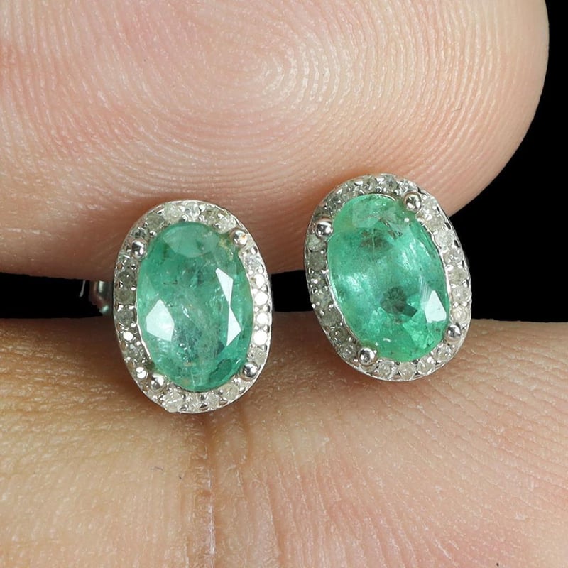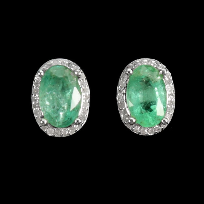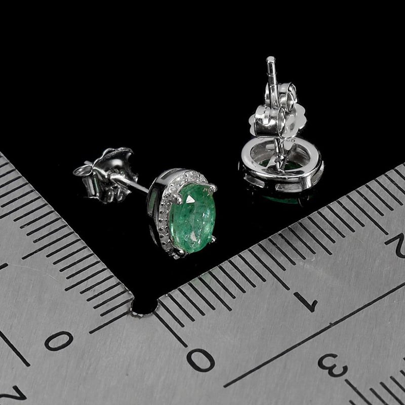 Natural Brazilian Green Emerald Earrings. Made In Solid Sterling Silver And Plated In14K White Gold. Features Natural Oval Facet Green Brazilian Emeralds And Sparkling Czs. Earrings Measure 8.0 X 6.0 Mm.