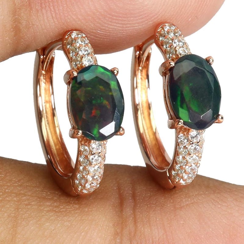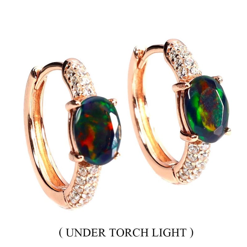 NATURAL RAINBOW FIRE OPAL EARRINGS. Natural Rainbow Fire Opal Earrings. Made In Solid Sterling Silver And Plated In14K Rose Gold. Features Natural Rainbow Fire Opals And Sparkling Czs. Earrings Measure 16.0 X 5.0 Mm. Condition: Good - Refer Images 010210+7