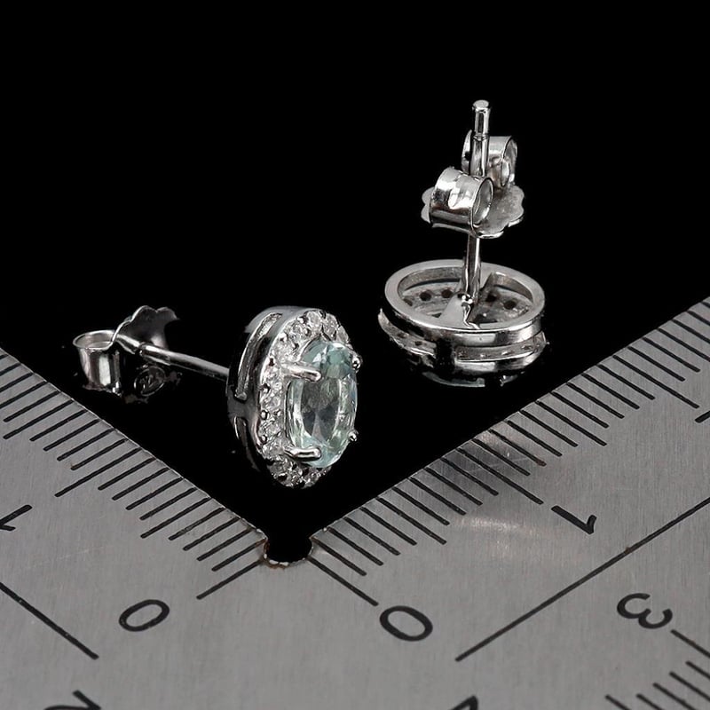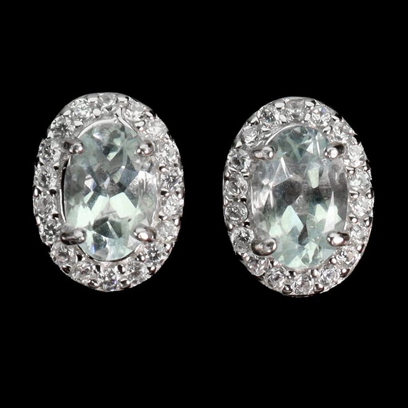 Natural Sky Blue Topaz Earrings. Made In Solid Sterling Silver And Plated In14Kwhite Gold. Features Natural Oval Facet Sky Blue Topaz And Sparkling Czs. Earrings Measure 8.0 X 6.0 Mm.