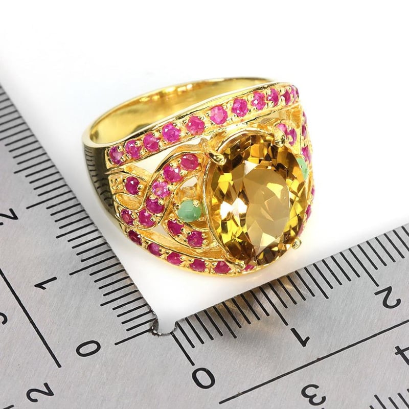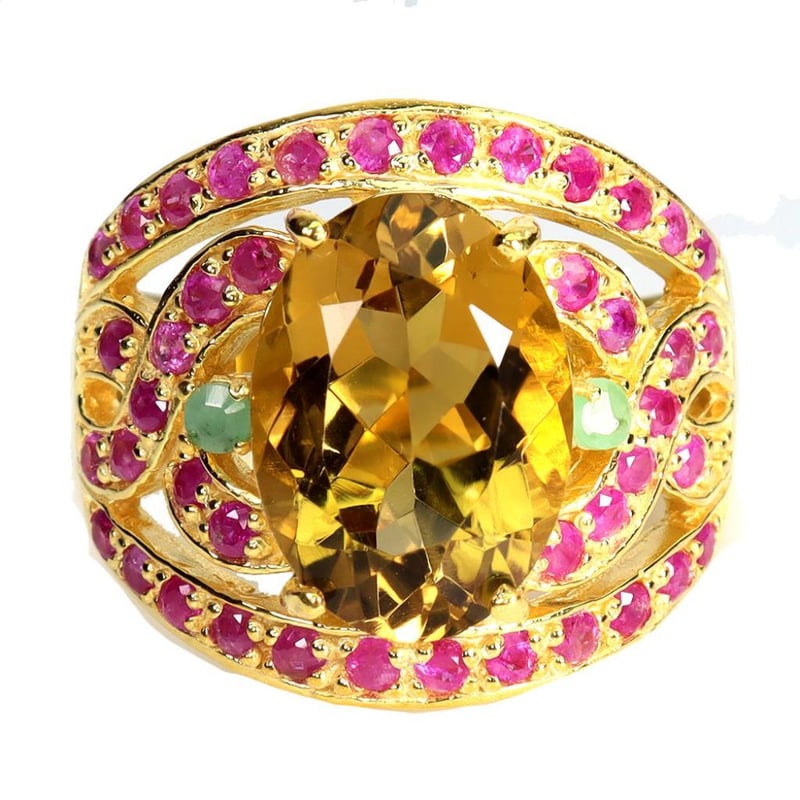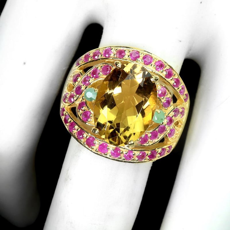 NATURAL CITRINE EMERALD & RUBY STATEMENT RING