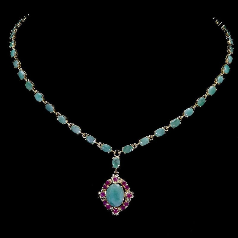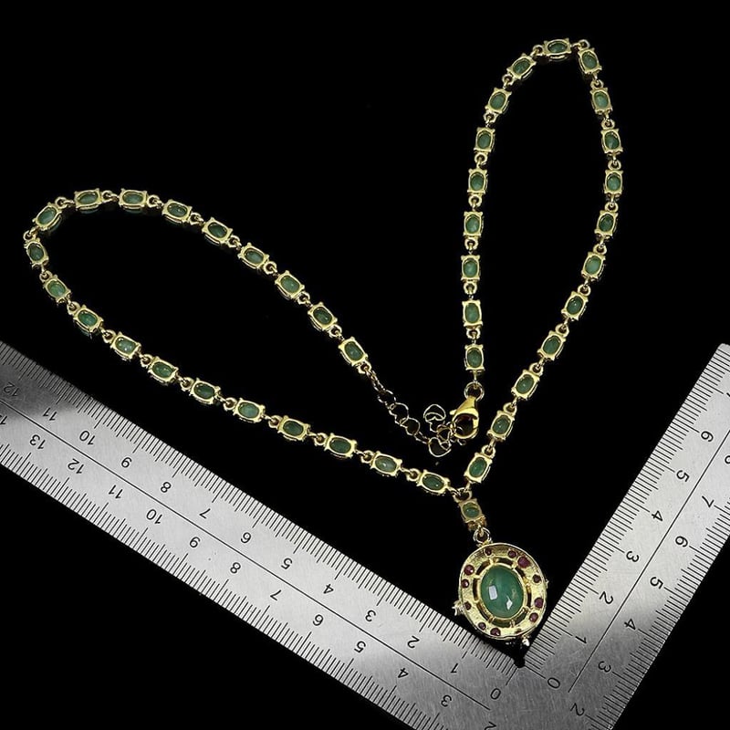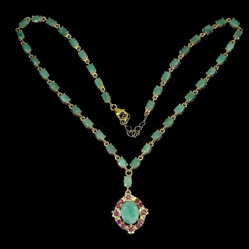 Natural Ruby & Emerald Tennis Necklace. Made In Solid Sterling Silver And Plated In14K Yellow Gold. Features Natural Green Emeralds And Natural Red Rubies. Necklace Measures 18 Inches In Length.