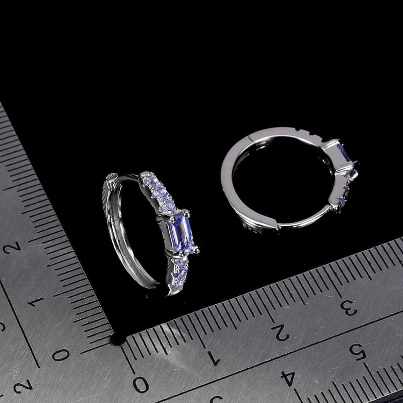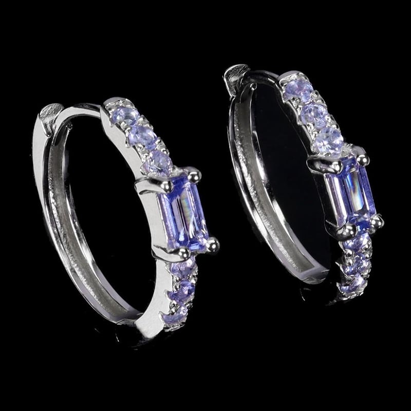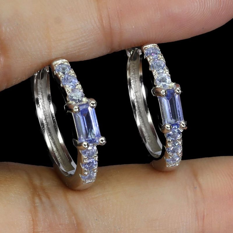 Natural Tanzanite Earrings. Made In Solid Sterling Silver And Plated In14K White Gold. Features Natural Violetish Blue Tanzanite'S. Earrings Measure 17X4Mm