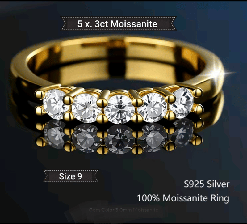 GOLD PLATED OVER 925 SILVER MOISSANITE ETERNITY RING