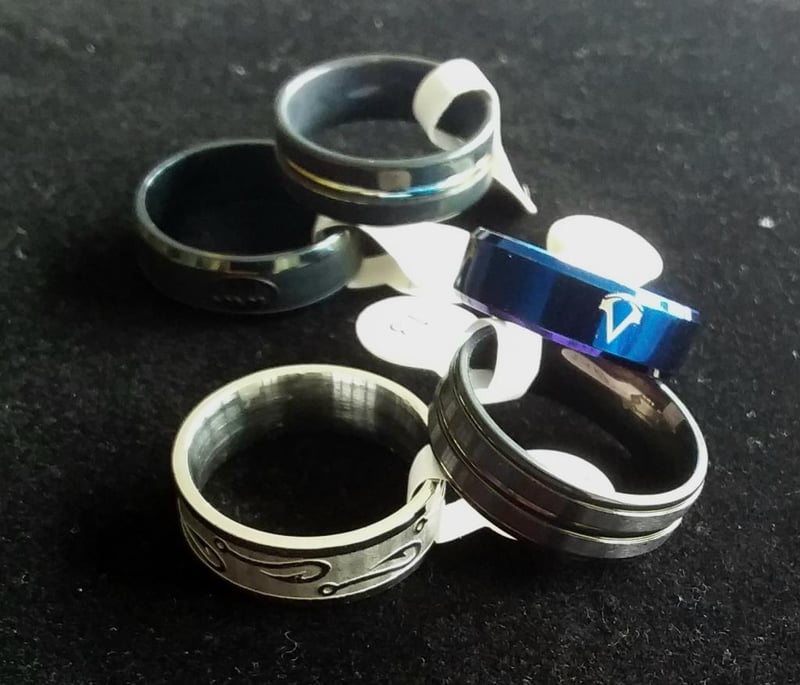 5 X ASSORTED TITANIUM UNISEX RINGS
