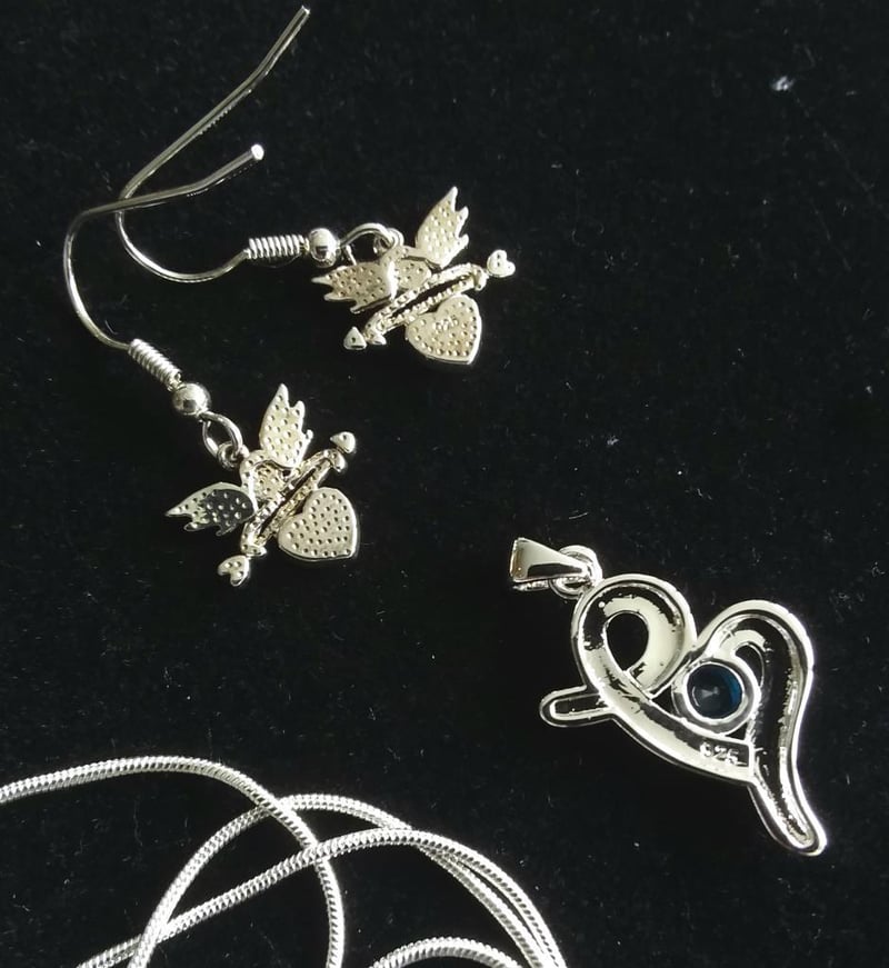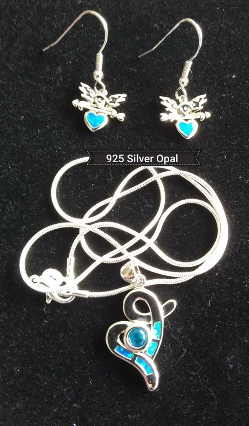 925 SILVER LAB CREATED BLUE FIRE OPAL EARRINGS AND NECKLACE Condition: Good - Refer Images 0163143+8