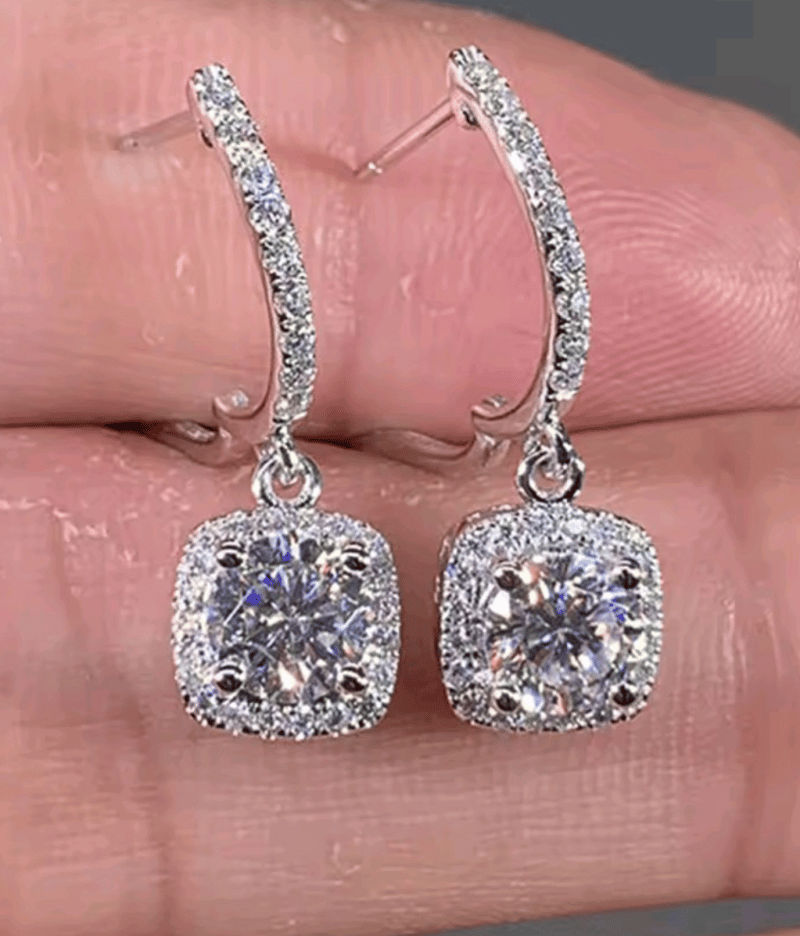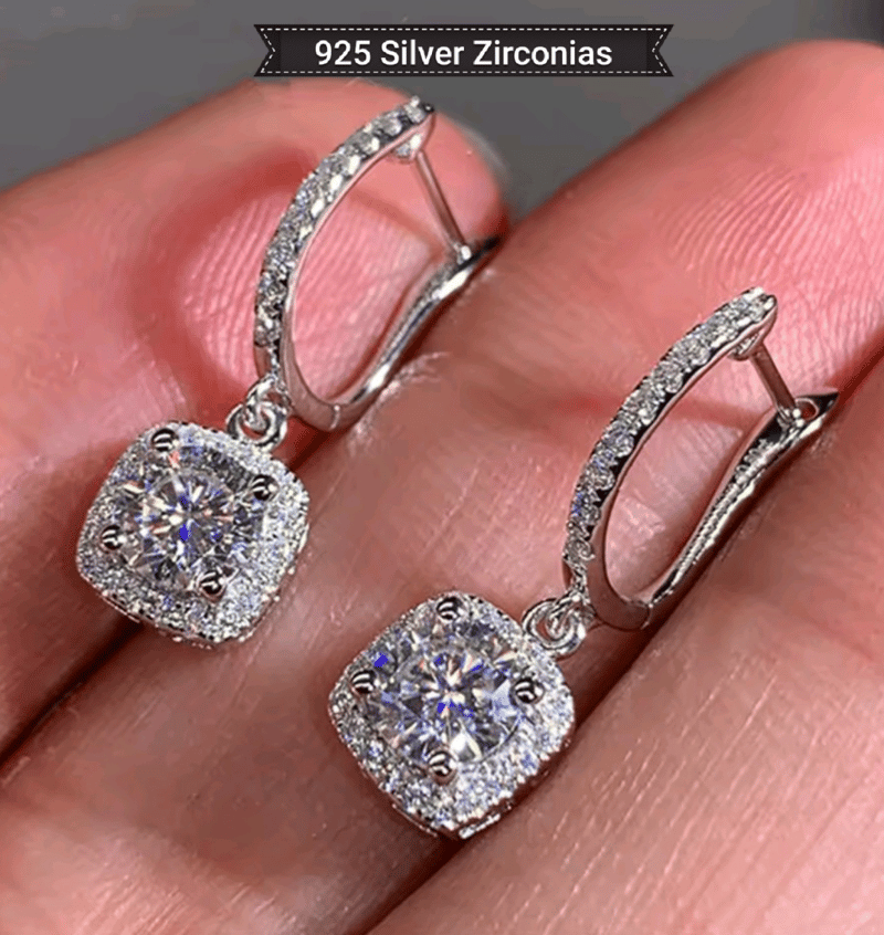 925 SILVER 1 CT WHITE CUBIC ZIRCONIAS DROP EARRINGS Condition: Good - Refer Images 0163143+9
